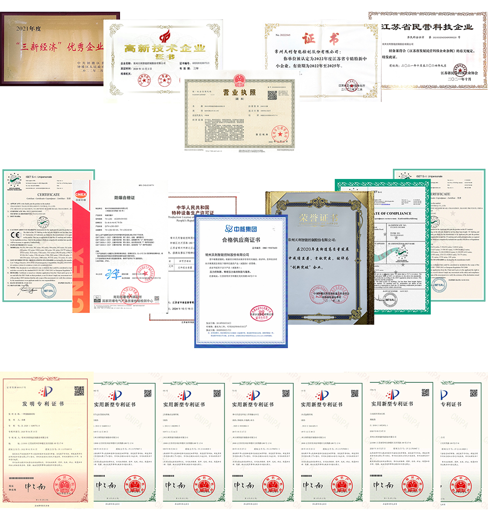 常州天利智能控制股份有限公司成立于1999年1月,2016年由原來的常州市天利控制器制造有限公司改制成為常州天利智能控制股份有限公司,注冊商標“天祥”。天利智能是中石油、中石化合格供應商(中石油供應商編碼:1000973627、中石化供應商編碼:42188230),公司陸續獲得江蘇省高新技術企業、江蘇省專精特新中小企業、常州市專精特新中小企業等榮譽稱號。公司通過ISO9001質量體系認證,ISO14001環境管理體系認證及ISO45001職業健康安全管理體系認證,部分產品獲得CE認證證書、防爆合格證書、SIL證書等相關證書,公司擁有各種專利證書30余項。2017年完成所有核級產品試驗,2018年開展HAF601取證工作,2022年獲得生態環境部(國家核安全局)頒發的民用核安全設備設計許可證、民用核安全設備制造許可證