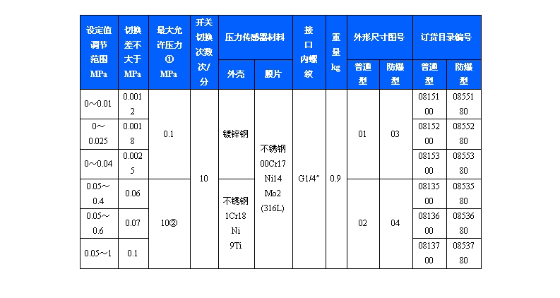 501/7D防爆壓力控制器采用膜片式的傳感器,部分規格傳感器外殼材料是不銹鋼,可用于腐蝕性介質,也可用于空氣、氣體、水蒸汽等中性氣體和油等液體介質。控制器的設定值可調,調節范圍0~1MPa。
