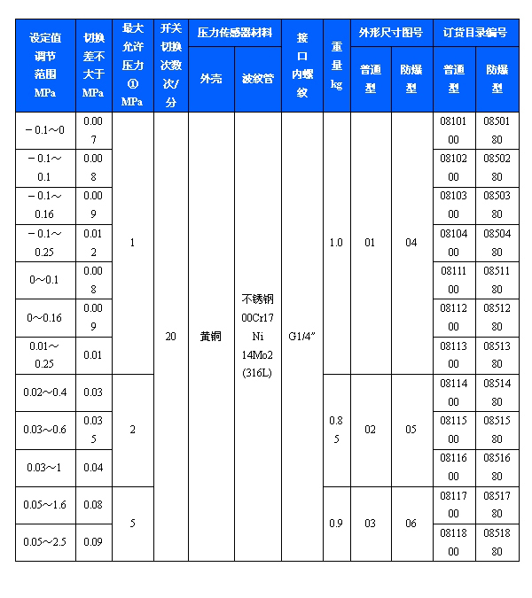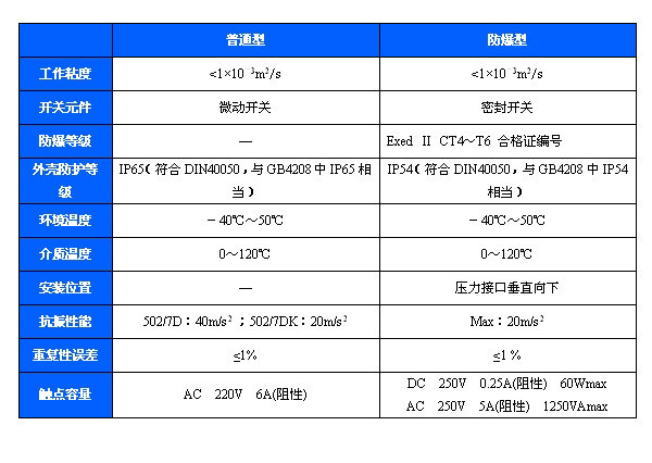 502/7D防爆壓力開關可用于真空。有特殊要求的,可另行設計調節范圍-0.1~6.3MPa。